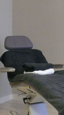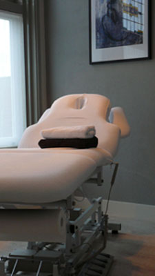 een elektrisch verstelbare massagetafel in de behandelruimte(eerste verdieping).